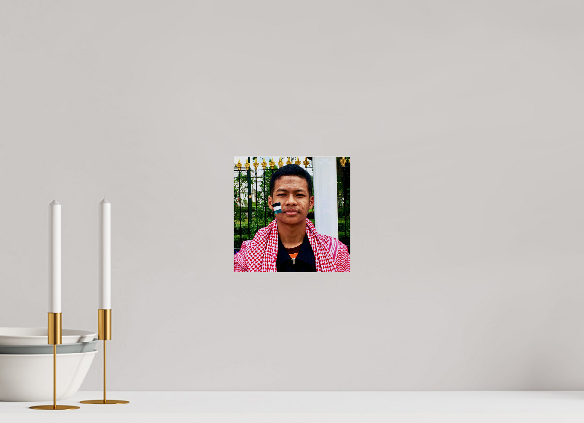 In Yogyakarta, the spiritual and intellectual heart of Java, student protests are often marked by a profound internationalist commitment. This young man embodies this link between global struggles and local solidarity: the red keffiyeh evokes anti-colonial struggles as much as cultural identity, while the Palestinian flag, applied to his cheek, becomes an intimate political marker.