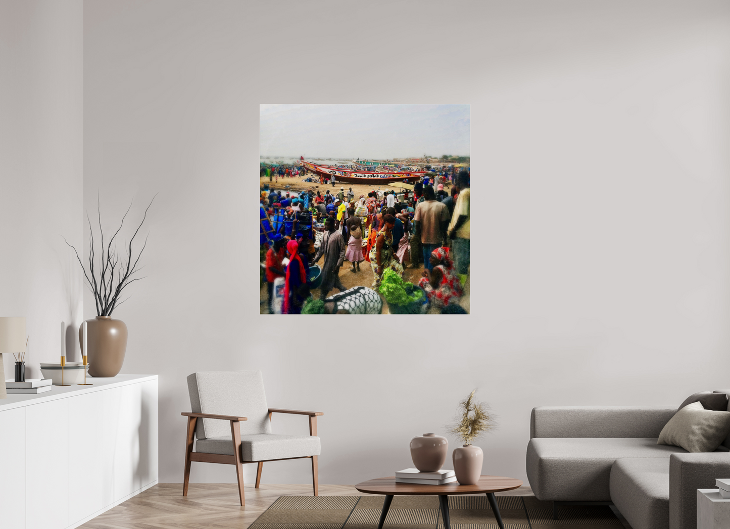 In M'Bour, they welcome a bustling ballet every morning: fishermen, fishmongers, fishmongers, children carrying fish, men with baskets of sea urchins or sardines. The beach becomes a market, a stage, a meeting place—but also a place of tension.