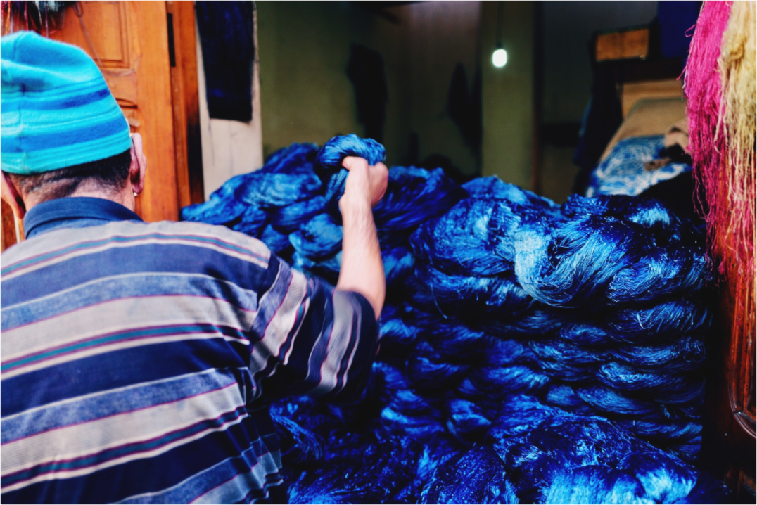 In Fez , in the alleys of the medina, cactus silk —also called sabra —is dyed with indigo using an ancient process. This plant fiber, extracted from the agave plant , is spun by hand before being immersed in vats where indigo leaves ferment. Unlike animal silk, sabra requires no worms: it is a vegan , hypoallergenic, and naturally shiny textile. This deep, almost mineral blue is one of the rarest and most durable in the textile world.