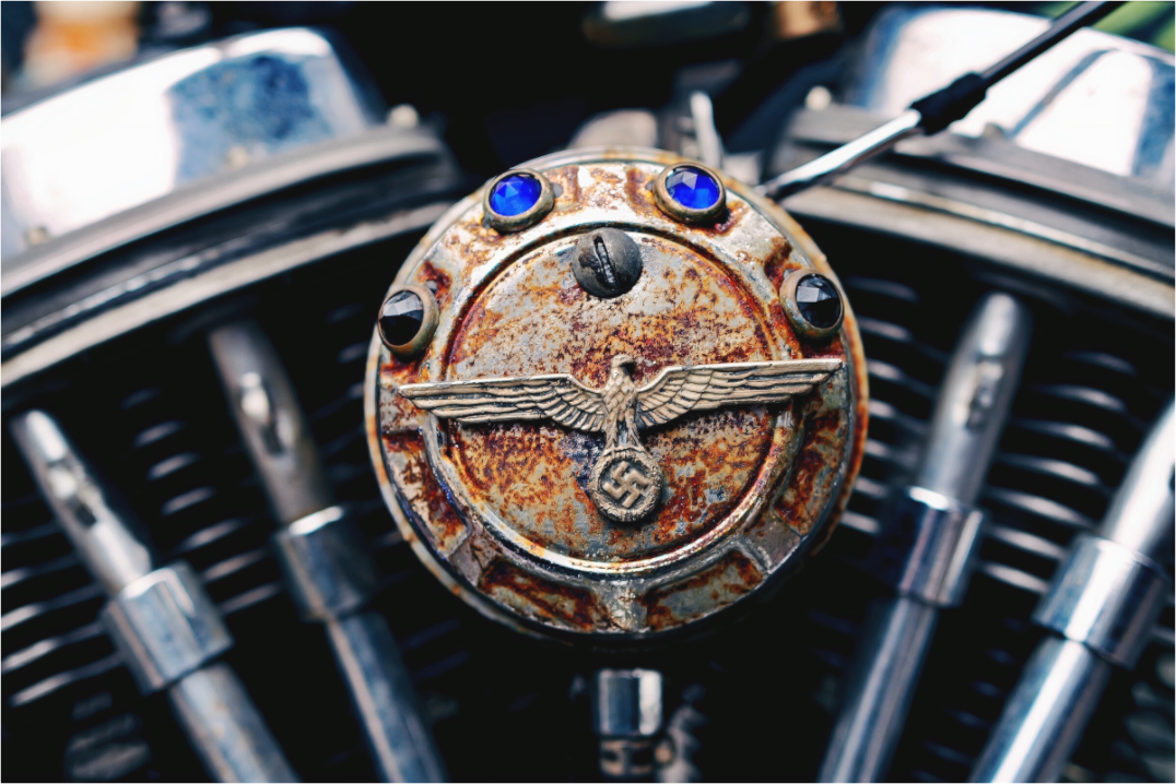 This custom engine detail shows the still visible use of the Third Reich insignia , with imperial eagle and Nazi swastika , a symbol banned in several European countries. In the outlaw biker culture of the 60s-70s, some American groups used it as a sign of anti-system provocation , detached (at least in appearance) from its original ideology. Today, these motifs reappear in certain circles of vintage mechanics , sometimes in Japan, in a confusion between provocative aesthetics, diverted historical memory and fascination for the visual power of symbols. This image raises a question: at what point does a fascist emblem cease to be a political sign? And who decides this shift?