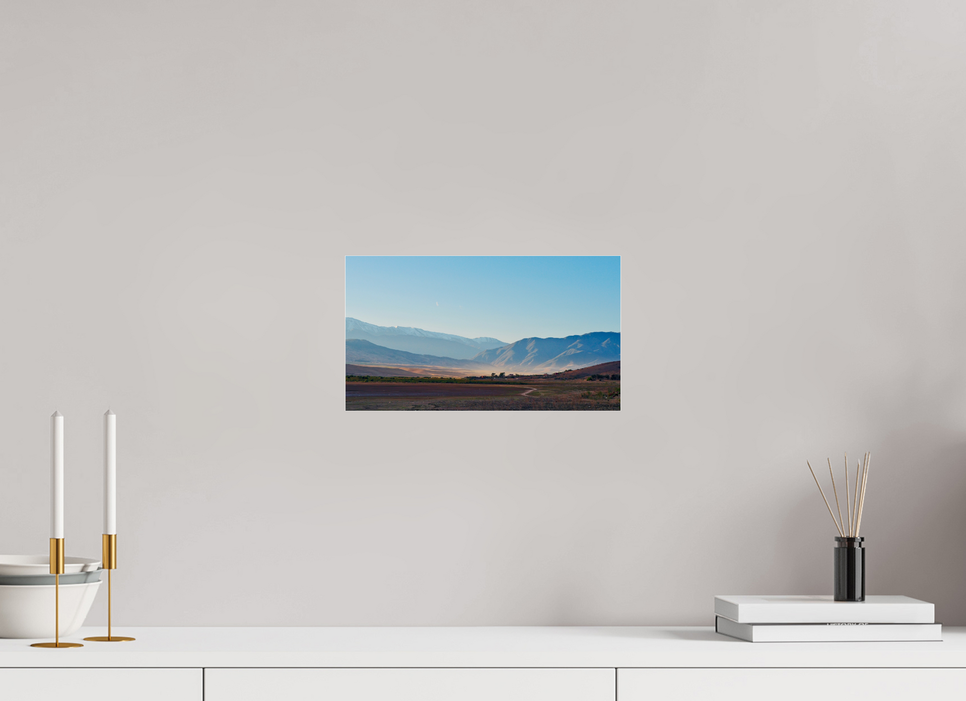 In the Moroccan High Atlas , the mountains rise in successive layers, hued with deep blues and mineral grays . At their feet, a tiny Berber village rests as if suspended between heaven and earth, bathed in twilight light. The contrast between the aridity of the plains and the majesty of the snow-capped peaks evokes an almost unreal scene, as if taken from a motionless dream.
