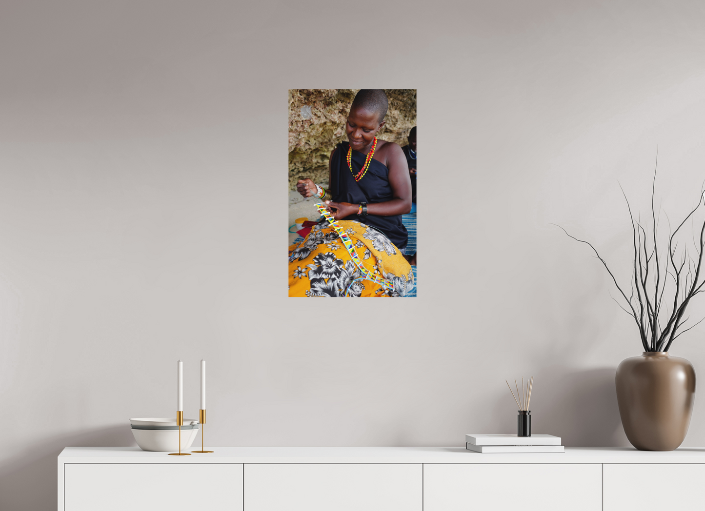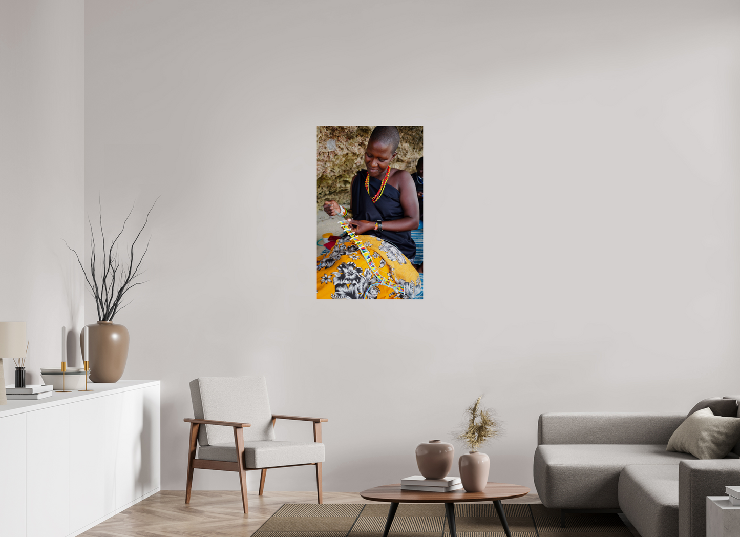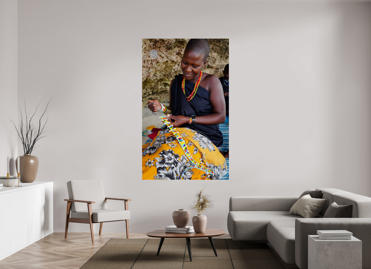 Beadwork is performed in a seated position, often on woven mats, in communal spaces conducive to intergenerational transmission. Today, these jewels are also sold in local markets or by the sea in Zanzibar, where some Maasai women settle temporarily to support their families back on the mainland.