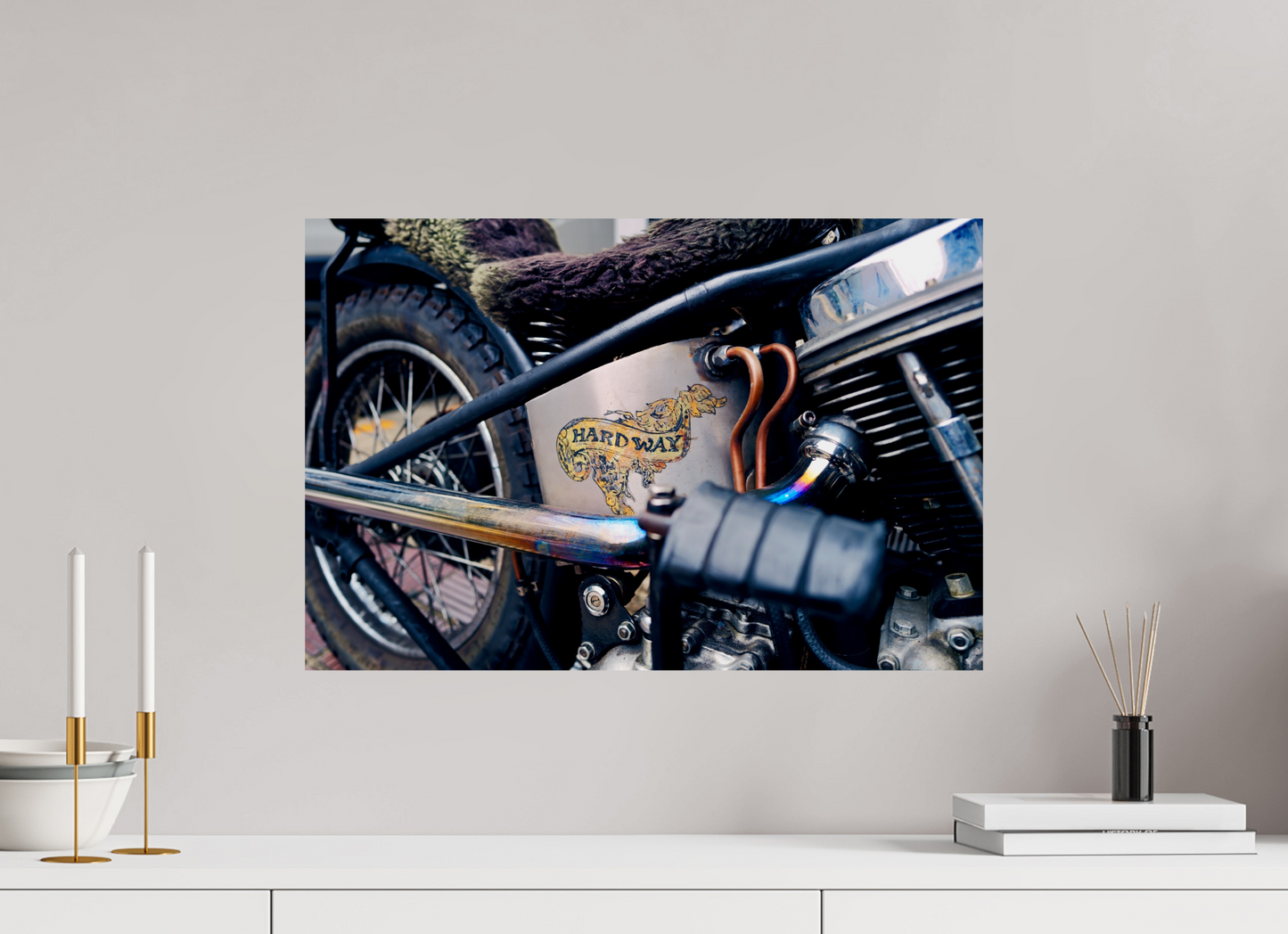 This transformed Harley, signed Hard Way , expresses a radical DIY aesthetic typical of the Japanese movement born in the 70s, influenced by American films but reinterpreted locally.