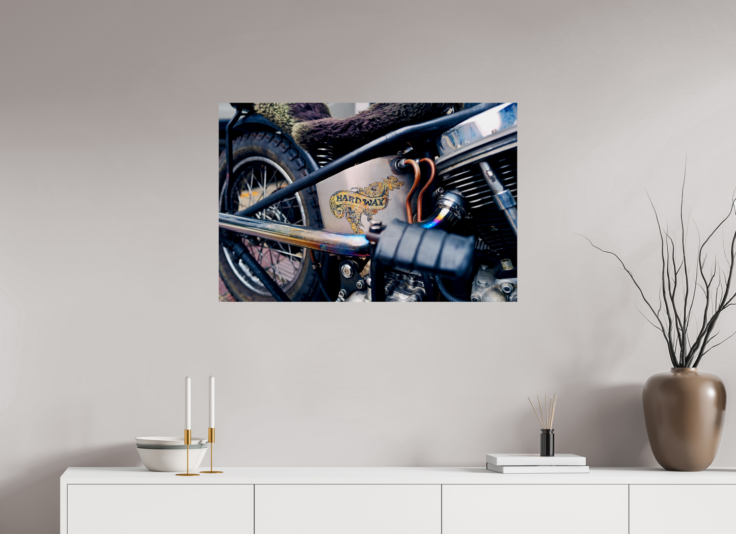 Here, the motorcycle becomes a rolling self-portrait, half machine, half message .