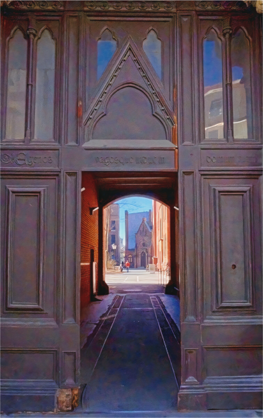 This Gothic arch opens onto one of Berlin's historic hearts: the Mitte district, a former Prussian intellectual center that has now become a place of memory and transmission. The arch belongs to the former Academie der Künste , or a university building in the neo-Gothic style, typical of 19th-century Germany, inspired by medieval religious forms to legitimize knowledge through verticality and spirituality.