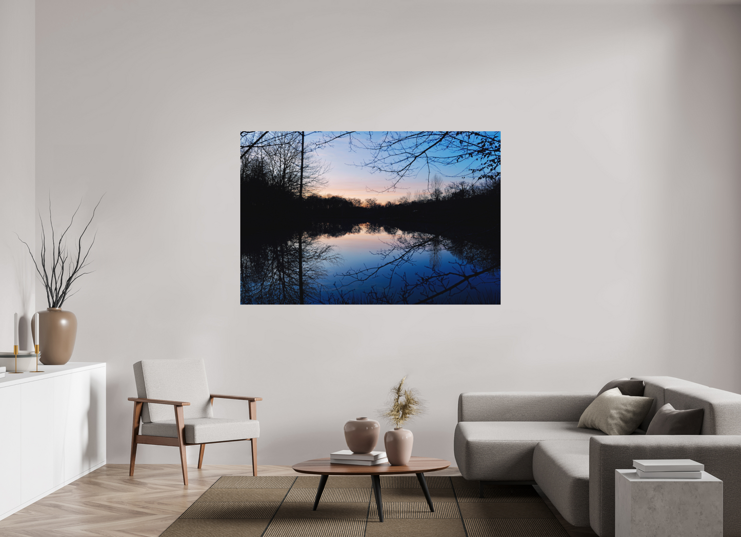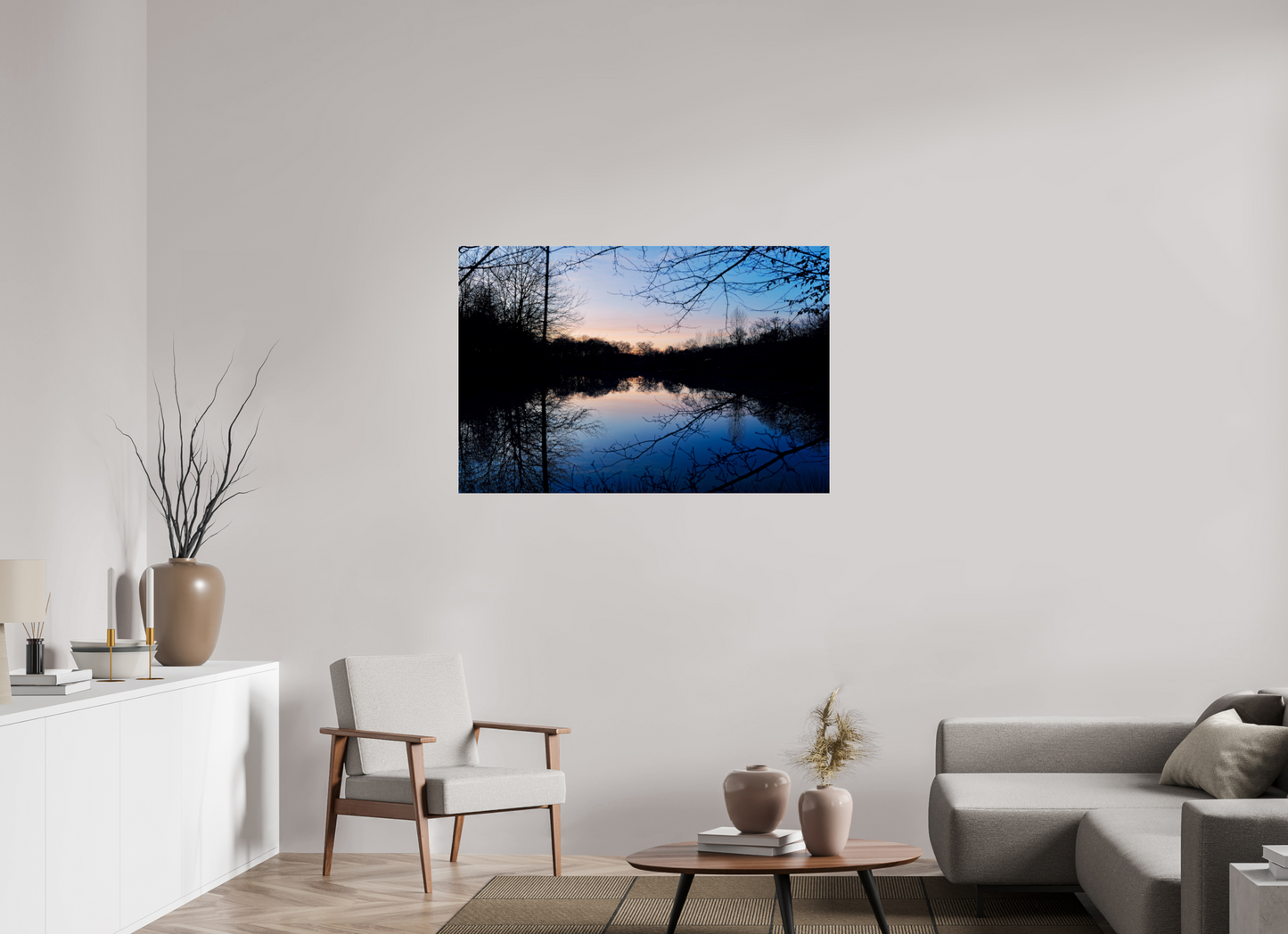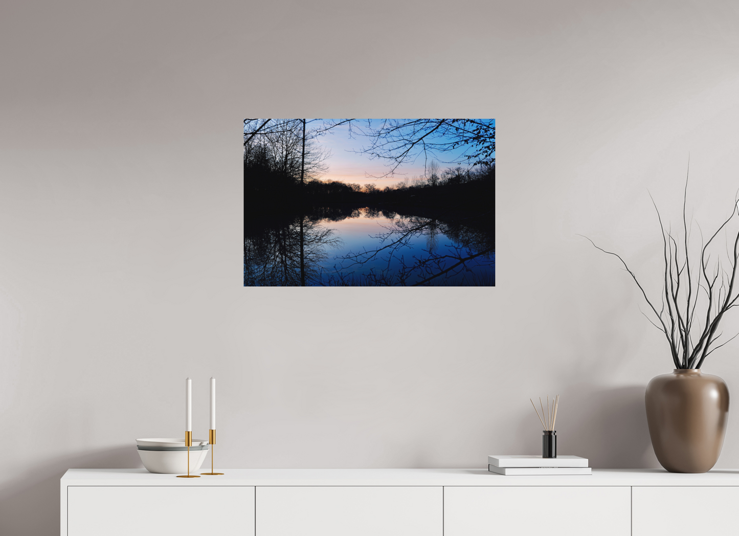 Photographing these ponds at the time of the “blue”, this brief period of time when the light decreases but the sky remains tinted, allows us to capture a rare balance between rural silence, plant structure and atmospheric light .