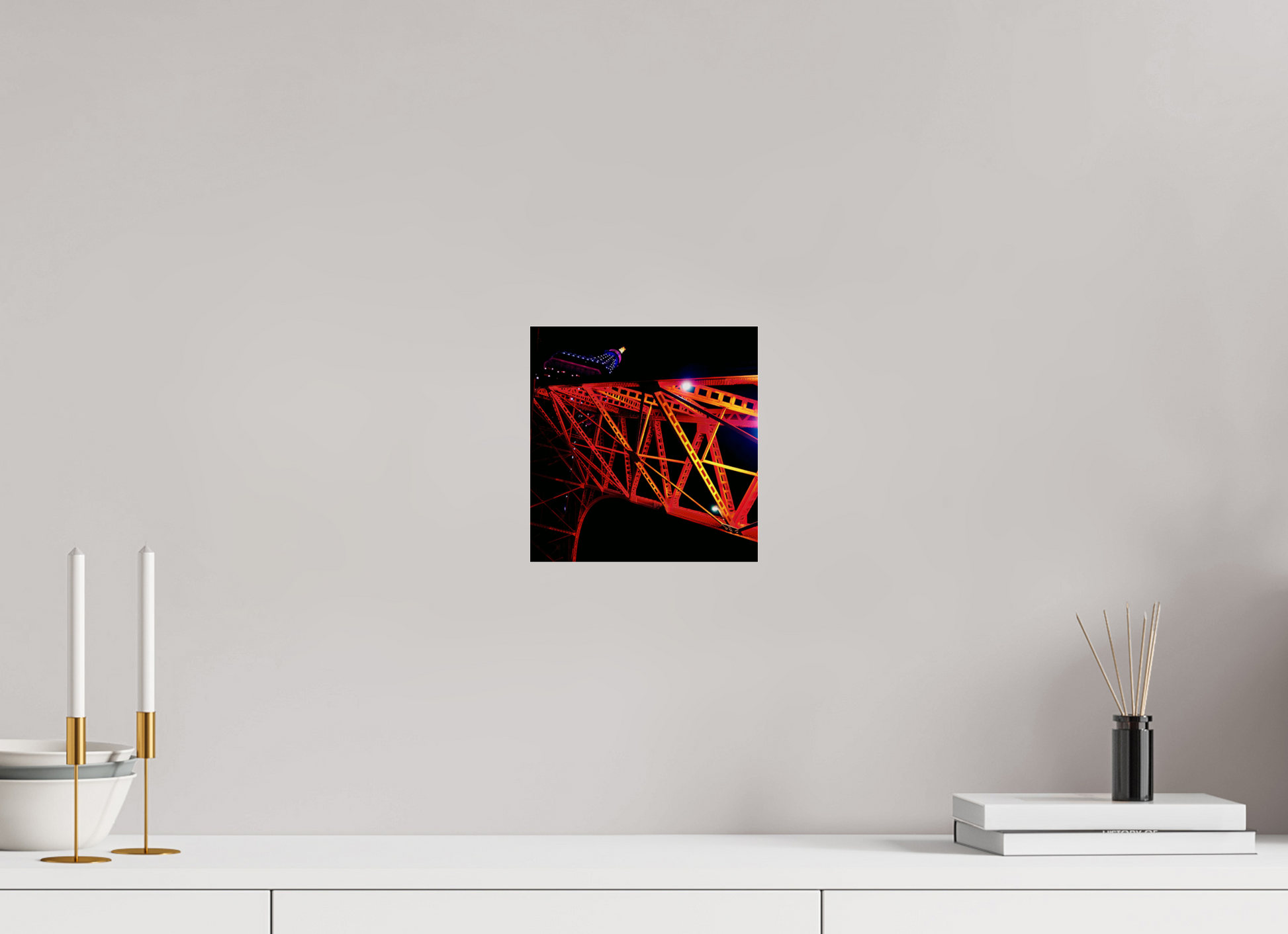 In the Tokyo night, the tower's skeleton loses its familiar appearance to become a vibrant network of metallic lines . Far from the romantic image of illuminated monuments, this fragment of steel reveals the raw, rhythmic, and functional face of a technological megalopolis. Seen from below, urban architecture ceases to be decorative: it exposes its nerves.