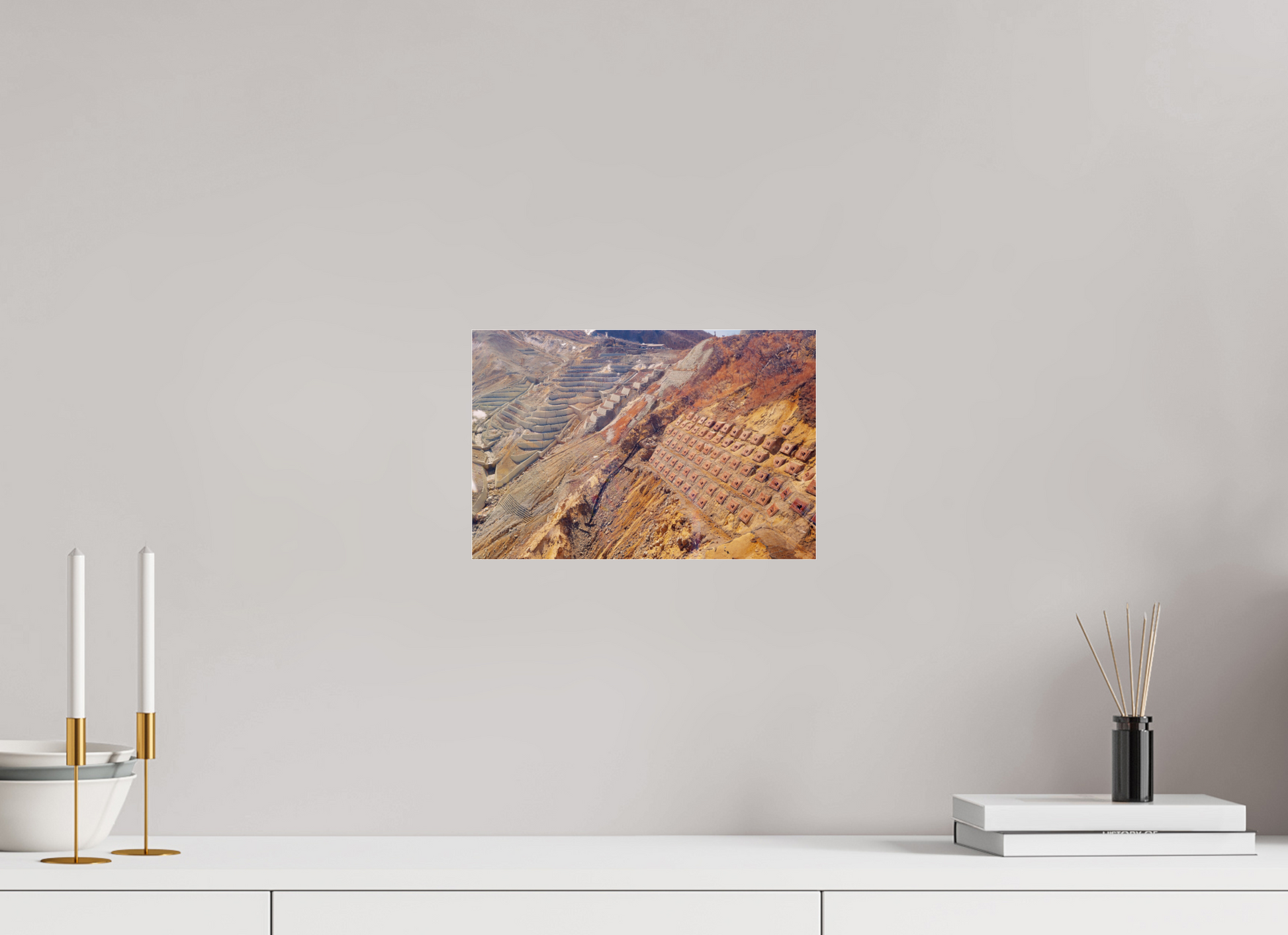 The photograph highlights these volcanic stabilization structures , whose repetitive forms appear almost ruler-drawn, offering a striking contrast to the chaotic textures of the volcanic rock . On the right, the concrete modules anchored in the earth – similar to geometric paving stones – embody the human attempt to come to terms with a living mountain.