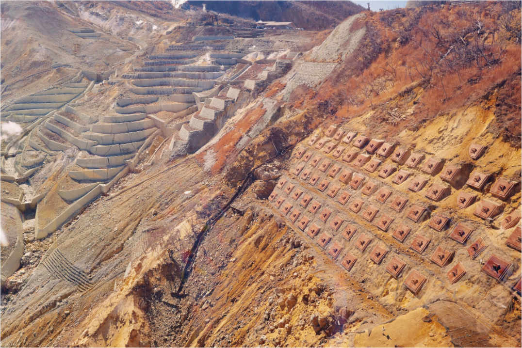 Ōwakudani, literally the Great Boiling Valley , is an active volcanic site formed by the eruption of Mount Hakone about 3,000 years ago. Sulfur fumaroles still rise from it today, continuously marking the surface of the mountain.